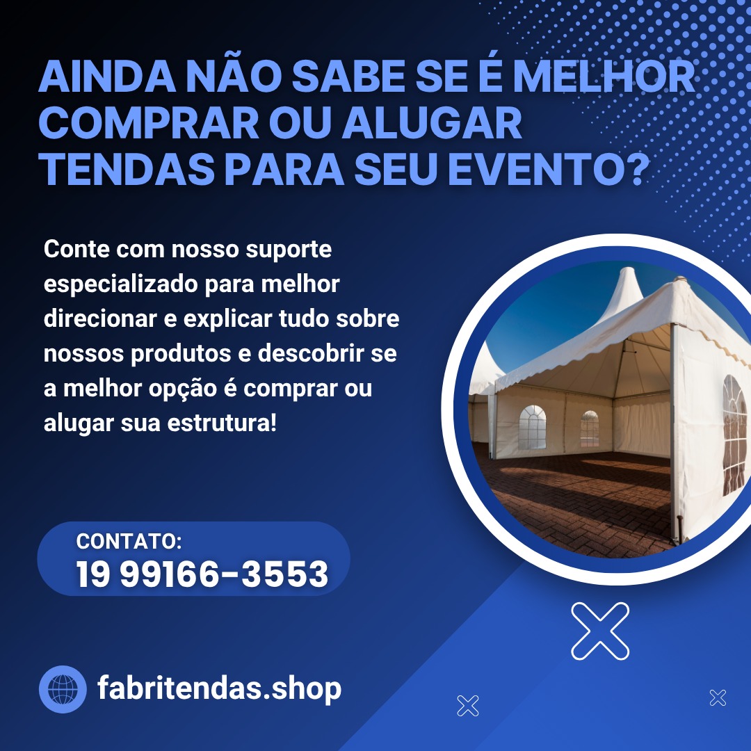 Venda e locação de tendas para festas, casamentos, eventos corporativos, feiras, shows, cerimônias ao ar livre e muito mais.